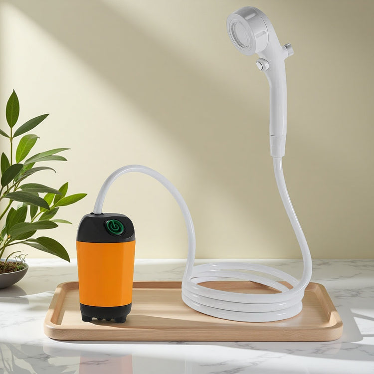 The KALLIS AquaGo™ is a portable electric shower designed for practical, everyday use – wherever you are. It delivers steady water flow with adjustable pressure, heats water quickly to your preferred temperature, and connects easily to different water containers. Its compact size fits into backpacks or storage bins, while the water-resistant ABS body and stainless steel components withstand outdoor conditions and frequent travel. Low power consumption makes it ideal for both short getaways and extended stays.